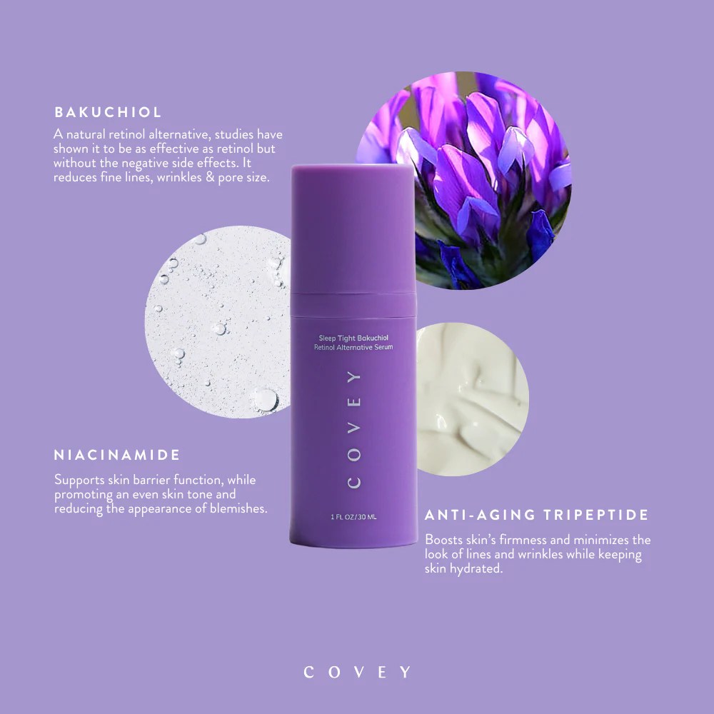 Bakuchiol skincare product campaigns via Covey Skincare and Herbivore Botanicals